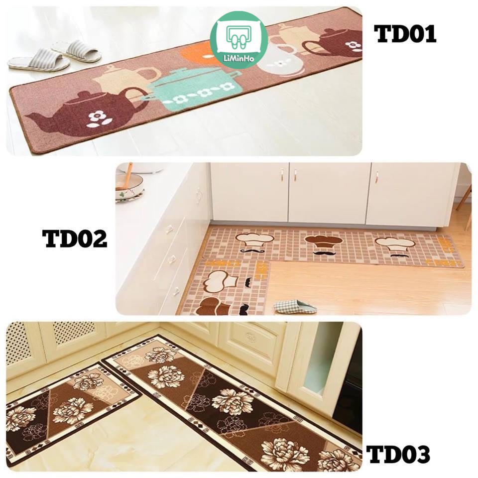 Thảm bếp dài cao cấpCó 03 mẫu cho mọi người lựa chọn.