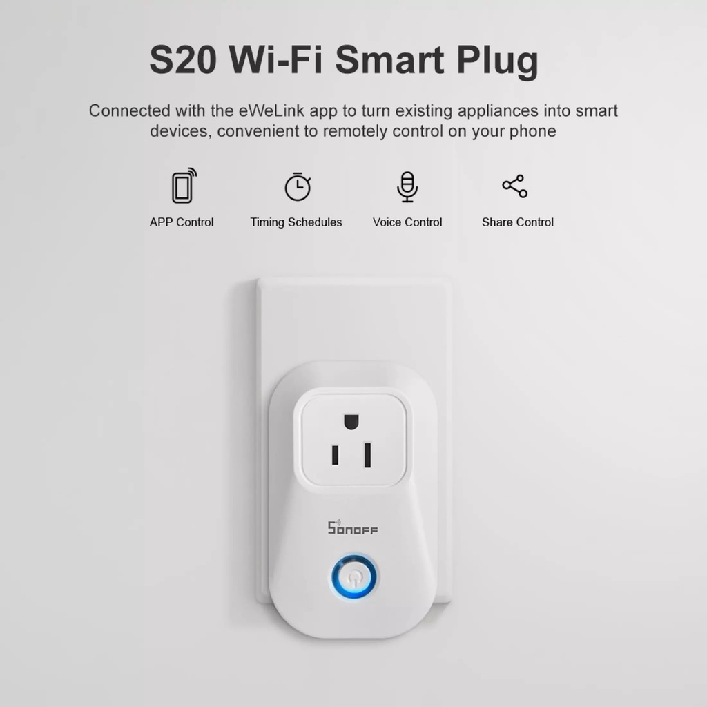 Thiết Bị Điện Gia Dụng > Mạch điện & Phụ tùng > Ổ cắm điện & Dây nối || Ổ cắm Wifi SONOFF S20 hẹn giờ, bật tắt từ xa qua App EWELINKCòn hàng