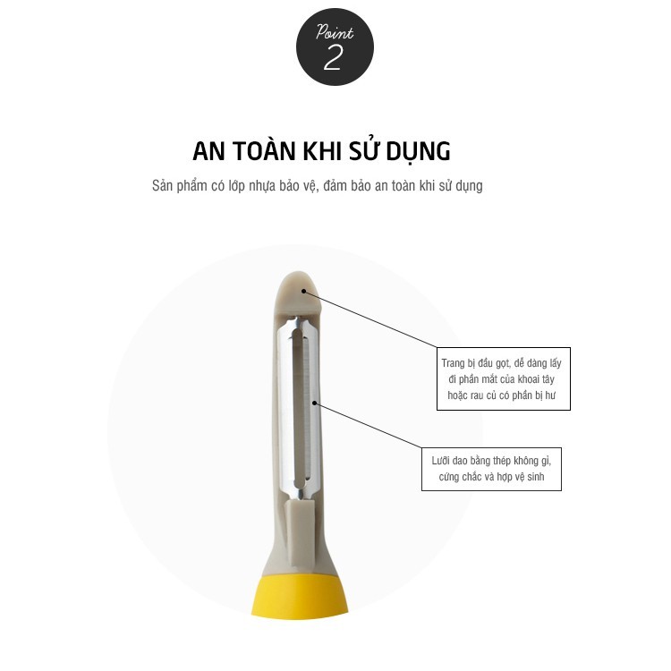 * Sản phẩm có lưỡi dao làm bằng thép không gỉ, sắc bén, tuyệt đối an toàn khi sử dụng, có tay cầm bằng silicone giúp bạn dễ thao tác.