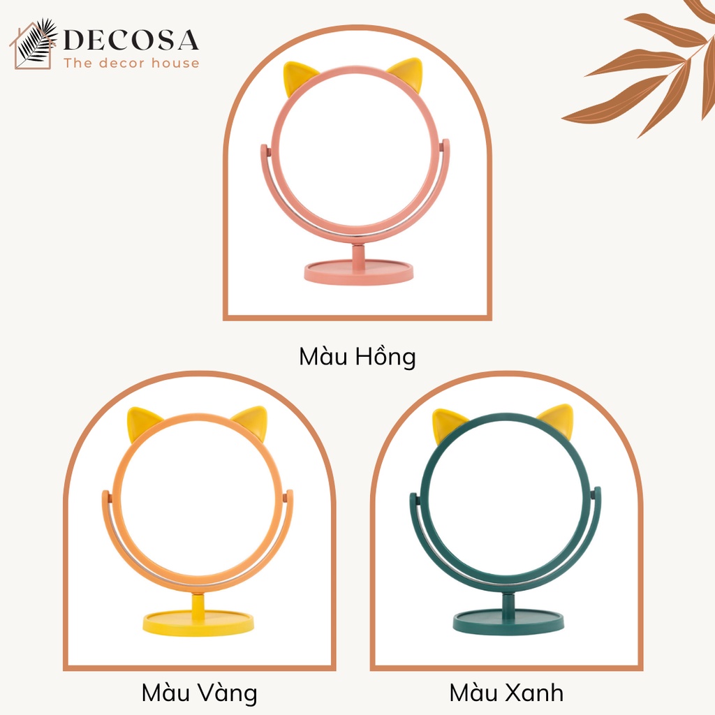 Gương để bàn trang điểm tai mèo xoay 360 độ DECOSA