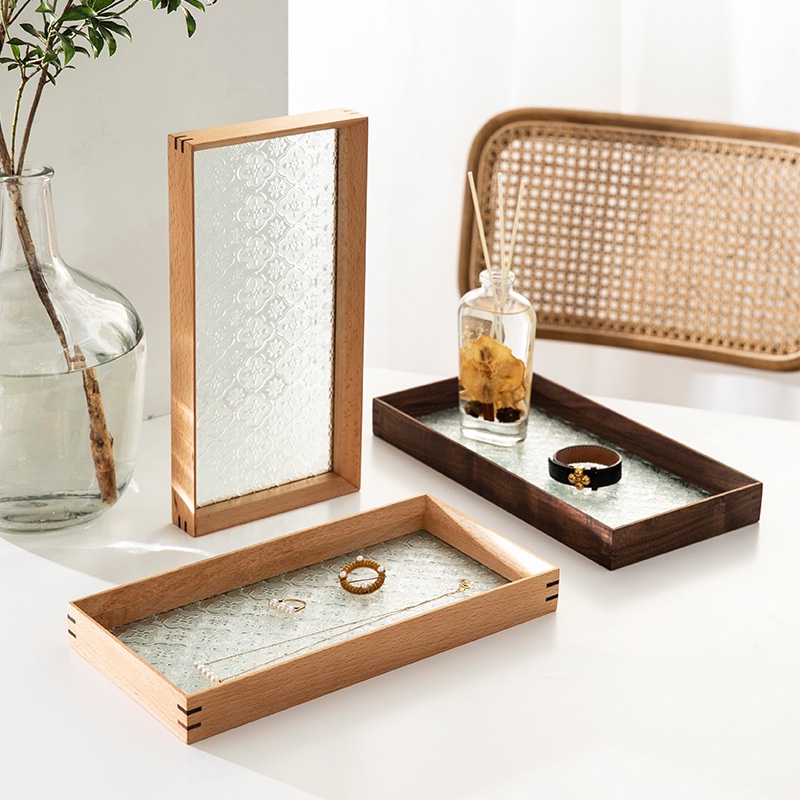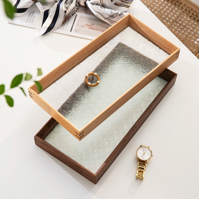 Khay gỗ mặt kính cao cấp phụ kiện chụp ảnh món ăn sang trọng - Giba