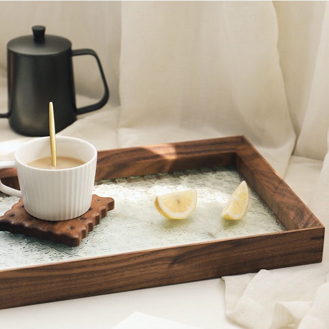 Nhà cửa & Đời sống > Bộ đồ bàn ăn > Khay, tấm lót bàn ăn || Khay gỗ mặt kính cao cấp phụ kiện chụp ảnh món ăn sang trọng - GibaCòn hàng