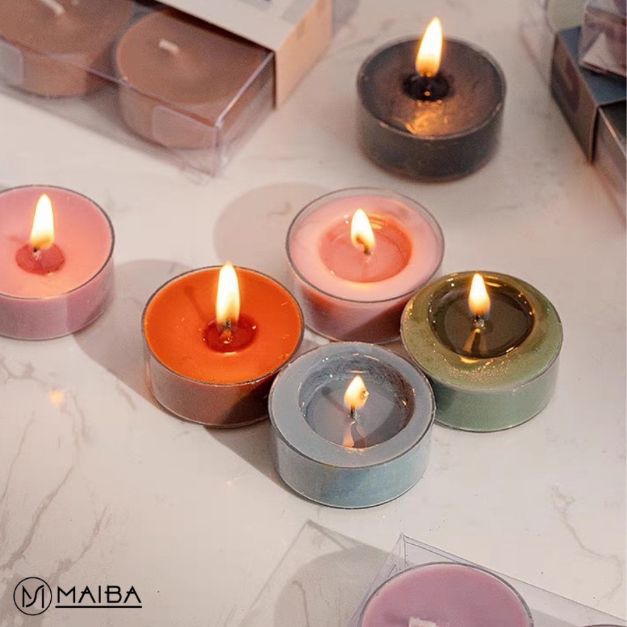 - Nến Thơm Thiên Nhiên Tealight Mini Tinh Dầu 3 Tầng Hương Phối Hợp MAIBA làm đồ trang trí decor đẹp, bắt mắt.