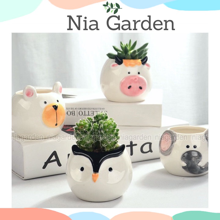 Giới thiệu Chậu thú mini trồng sen đá xương rồng lá may mắn cây nhỏ để bàn Nia Garden N4