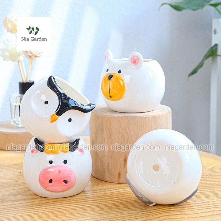 Chậu thú mini trồng sen đá xương rồng lá may mắn cây nhỏ để bàn Nia Garden N4