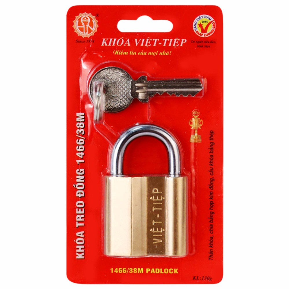 Ổ khoá treo đồng Việt Tiệp đồng thau: Thân ổ khoá được làm bằng đồng nguyên khối, móc khoá làm bằng hợp kim cao cấp chiệu được nhiệt độ, độ ẩm của môi trường và thời tiếtChắc chắn , sử dụng bền lâu đã được nhiều người sử dụng và tin dùng