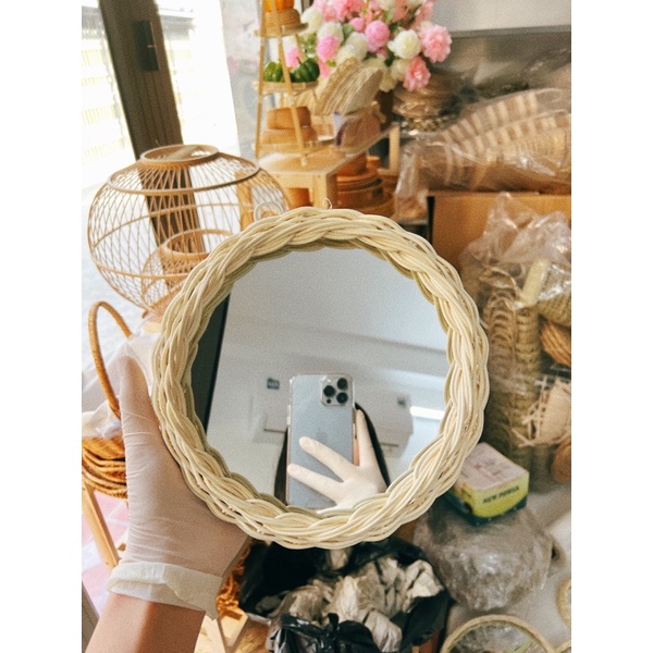 Gương mây được làm thủ công hoàn toàn đã qua xử lý, ép gương cẩn thận, hàng cầm trên tay siêu chắc chắn, gương soi sắc nétShop làm gương loại xịn nên soi gương chân thật lắm ạ 🥰🥰