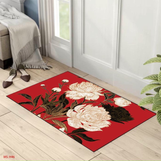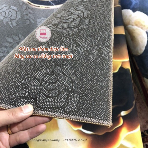 - Chất liệu: bề mặt thảm bằng sợi thô, mặt đáy bằng chất liệu cao su sần tăng ma sát chống trơn trượt.