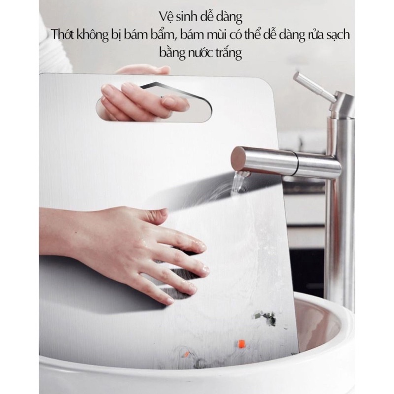 Thớt inox hạn chế được mọi nhược điểm của thớt gỗ là hay bị ẩm và mốc, thớt inox vừa nhỏ gọn nhẹ, lại luôn sạch sẽ. Chưa kể các mẹ có thể dùng mặt thớt để rã đông đồ ăn rất nhanhThông số kĩ thuật: