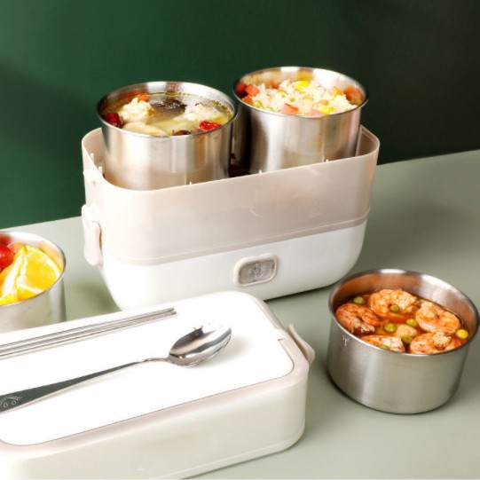 Hộp cơm điện - Hộp tự động hâm nóng cơm tiện lợi 2 tầng, khay inox không rỉ 200W - 2 Lít