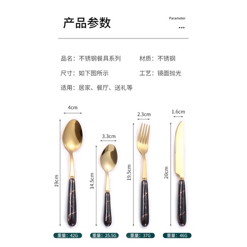Bộ dao muỗng nĩa làm bằng thép không rỉ , chuôi bằng sứ vân đá cẩm thạch sang trọng , trang trí trưng bày trong bàn bếp thì đẹp tuyệt vời luôn nha .