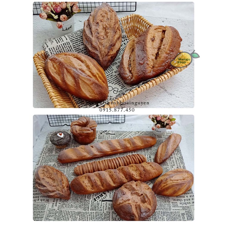 Bánh Mỳ Mô Hình Giống Thật 90% Chụp Ảnh Sản Phẩm Decor Trang Trí PicnicChất liệu: làm từ cao su mềm, cảm giác rất giống như cầm chiếc bánh mỳ thật trên tay.