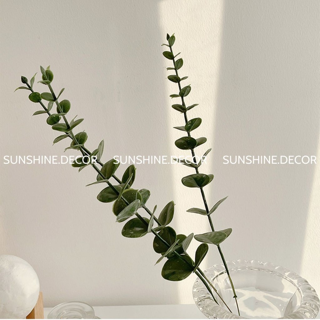 Cây bạch đàn được biết đến là một biểu tượng của sức mạnh, là biểu tượng của sự sinh tồn. Vì vậy, nếu bất cứ lúc nào bạn cảm thấy bế tắc và mệt mỏi, hãy ngắm nhìn cây bạch đàn, giao lưu với chúng và tiếp thu năng lượng của chúng. Sunshine.decor đảm bảo rằng bạn sẽ tìm được cảm giác bình yên và nhận thêm sức mạnh tinh thần giúp cho cuộc sống của bạn tươi đẹp hơn. Việc cắm cành lá bạch đàn ngoài việc gia tăng giá trị thẩm mỹ cho không gian sống và phù hợp với bố cục căn phòng của bạn, chúng còn mang rất nhiều ý nghĩa sâu sắc. Hiện tại, Sunshine.decor đang cung cấp nhiều mẫu cành lá bạch đàn trang trí được làm bằng chất liệu nhựa PE cao cấp, cành cây, lá, thân cây được thiết kế chắc chắn và bắt mắt, tuy nhiên, bạn cũng có thể dễ dàng uốn cong chúng để tạo đường nét và phong cách riêng cho sở thích của mình.Lá bạch đàn dùng trưng bày phòng khách, trang trí nhà cửa dành cho những ai yêu phong cách Vintage cổ điển và mộc mạc.