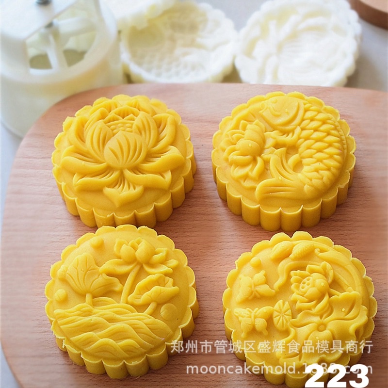 Nhà cửa & Đời sống > Dụng cụ nhà bếp > Dụng cụ nướng & trang trí bánh || Khuôn trung thu lò xo 2021-4 mặt 150g-200gCòn hàng
