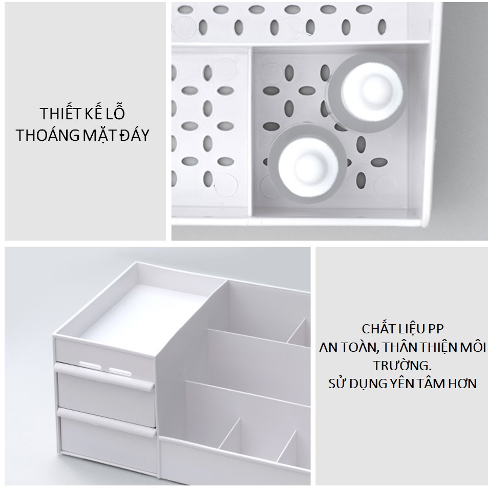 Khay Đựng Mỹ Phẩm Loại LỚN DÀY, Hộp Đựng Đồ Trang Điểm Đa Năng Nhiều Ô Tiện ÍchNgày nay với nhu cầu làm đẹp ngày càng tăng cao thì việc các bạn nữ sở hữu nhiều loại mỹ phẩm cũng như dụng cụ trang điểm là điều tất yếu. Qua đó sẽ khiến cho việc quản lý và sử dụng chúng ngày càng trở nên khó khăn hơn và chắc chắn bạn sẽ cần một vật dụng để giúp cho bạn việc này. KHAY ĐỰNG MỸ PHẨM ĐỰNG ĐỒ TRANG ĐIỂM sẽ là một dụng cụ hỗ trợ đắc lực cho bạn trong việc làm đẹp.