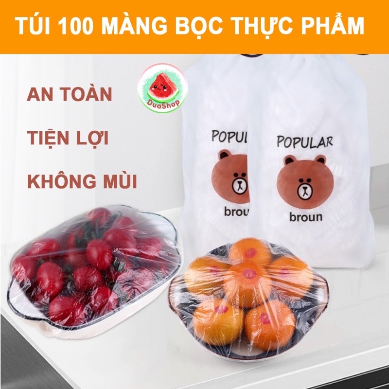 Giới thiệu Gói 100c Màng Bọc Thực Phẩm Có Chun Co Dãn Tái Sử Dụng Kèm Túi Gấu