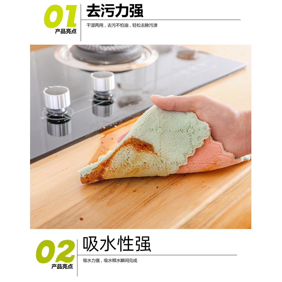 Khăn lau bếp đa năng 2 mặt - Rửa bát - lau Bàn khăn thấm nước siêu tốt nhanh khô