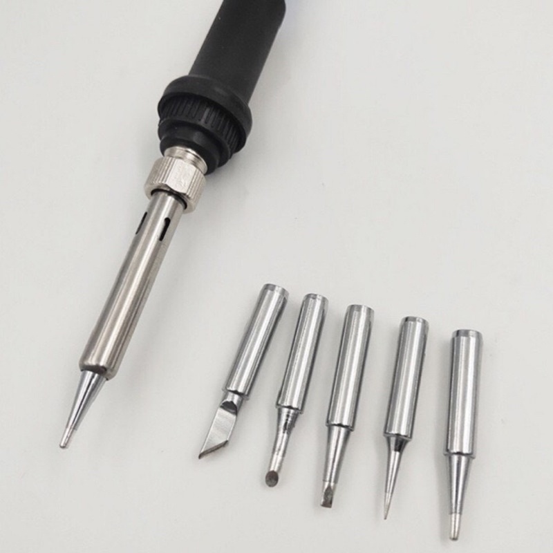 1 mỏ hàn có chỉnh nhiệt độ, 5 đầu mũi hàn, đế để gá đầu hàn