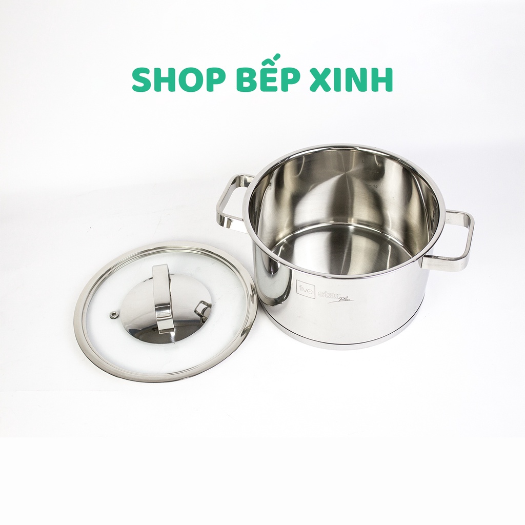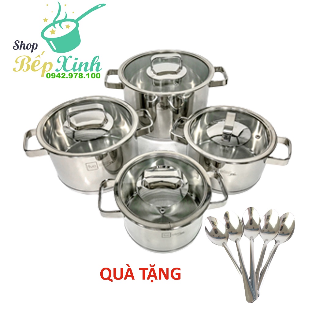 Bộ nồi inox 304 cao cấp FIVE STAR Plus 4 chiếc nắp kính tặng 5 muỗng ăn- nồi inox bếp từ ( nồi 16cm x 18cm x 20cm x 24cm