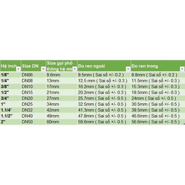 - Kiểu đầu gờ lục giác , phần thân ren trong - Bít chặn đầu ống lại
