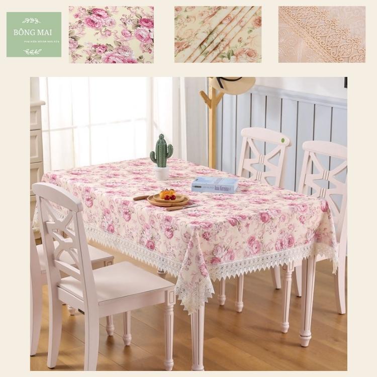 [90*150cm] Khăn trải bàn vài jacquard dệt nổi VIỀN REN sang trọng thanh lịch