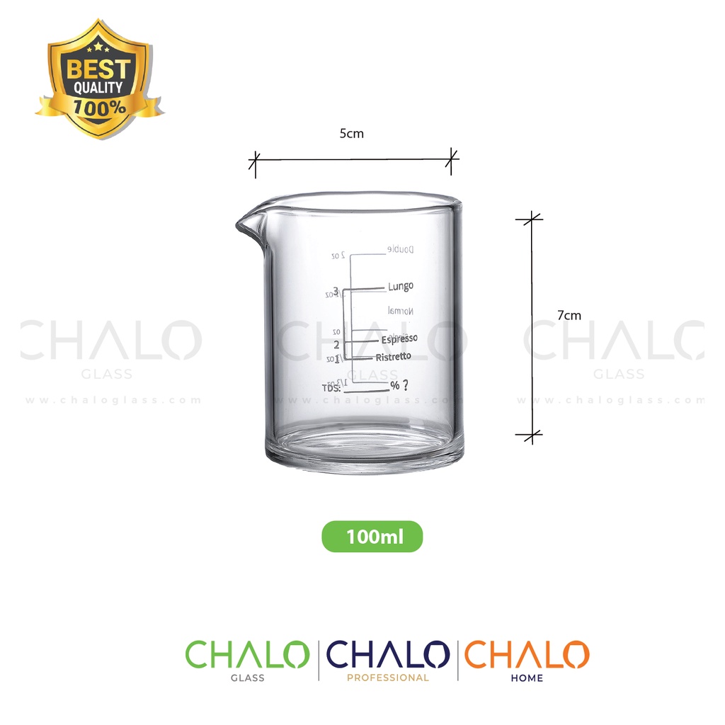 Bình rót Espresso thủy tinh chịu nhiệt mỏ vịt - Có chia vạch - 100ml