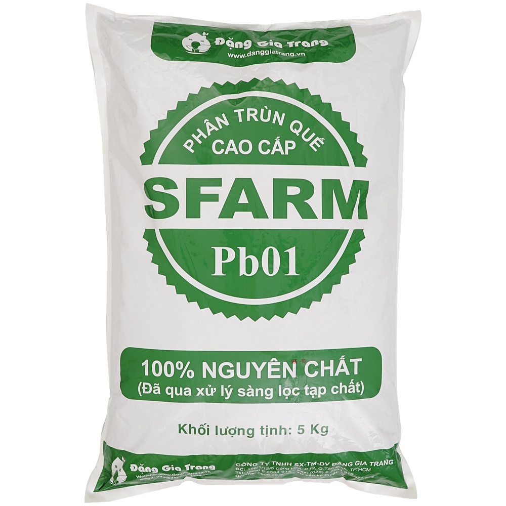SFARM Pb01 là dòng phân trùn quế cao cấp đã được giảm ẩm qua hệ thống nhà màng 1 cách tự nhiên nhất, sau đó sàng lọc và ray mịn bằng hệ thống máy xử lý chuyên nghiệp. Phân trùn quế SFARM Pb01 vẫn chứa nhiều trứng trùn và kén trùn trong phân nên có tác dụng tốt trong cải tạo đất, tạo độ mùn và phát huy tất cả các tác dụng vượt trội vốn có của phân trùn quế. Ngoài ra do phân đã được xử lý nên mịn hơn và có độ ẩm lý tưởng cho việc bón phân cũng như lưu trữ, bảo quản. Điều này giúp cho Phân trùn quế SFARM Pb01 dễ bón, giảm công bón, dễ vận chuyển và tối ưu chi phí hơn so với Pb00.– Phân trùn quế SFARM Pb01 là loại phân hữu cơ tự nhiên tốt nhất, phù hợp cho các trang trại nông sản xuất khẩu, xin các tiêu chuẩn chứng nhận VIETGAP, GLOBALGAP, chứng nhận hữu cơ….