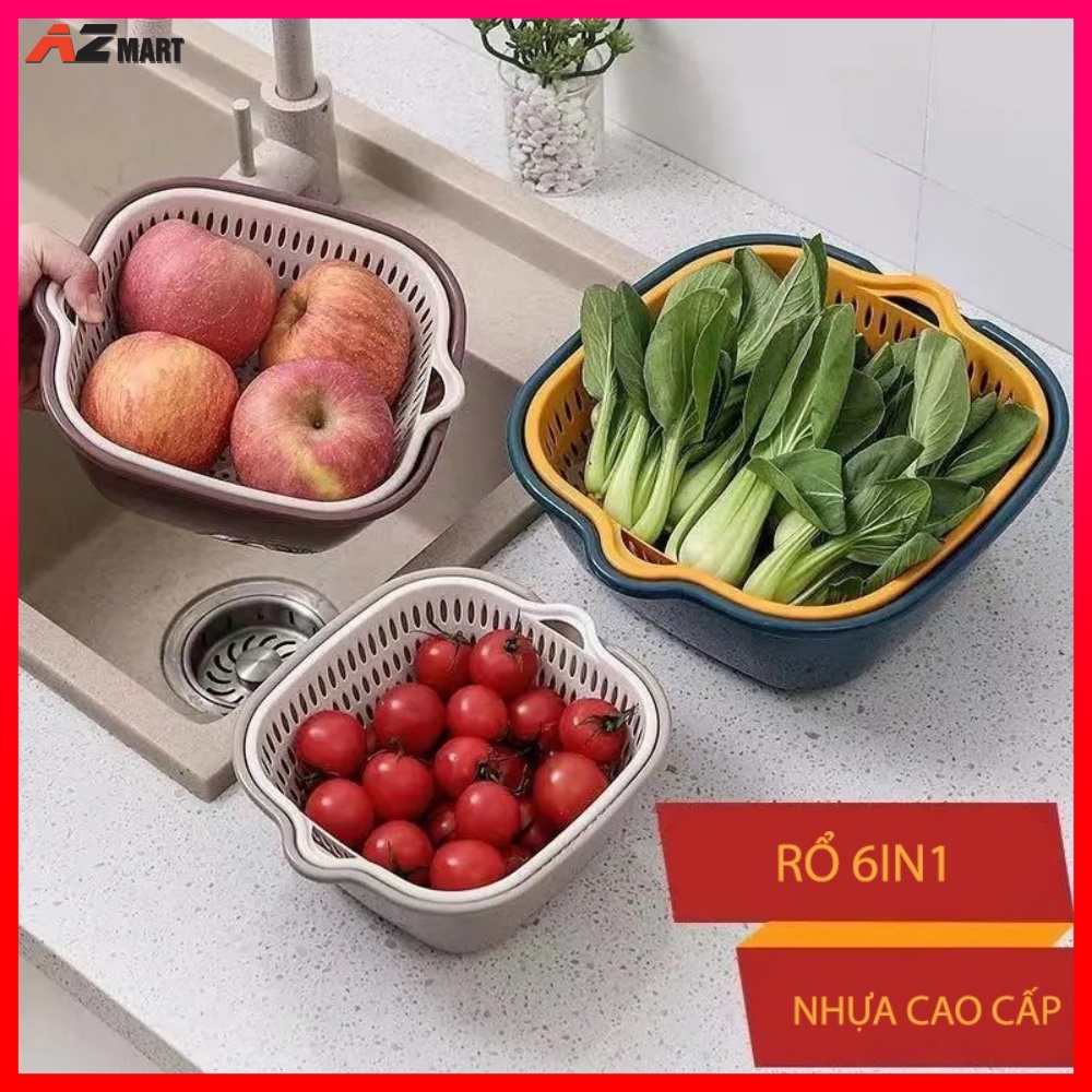 Bộ 6 rổ nhựa - rổ rửa rau quả : Chất Liệu : Nhựa PP cao cấp