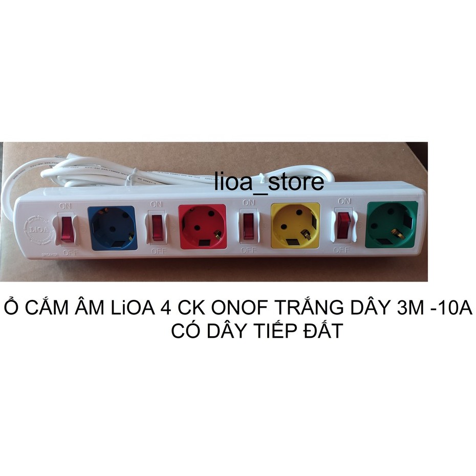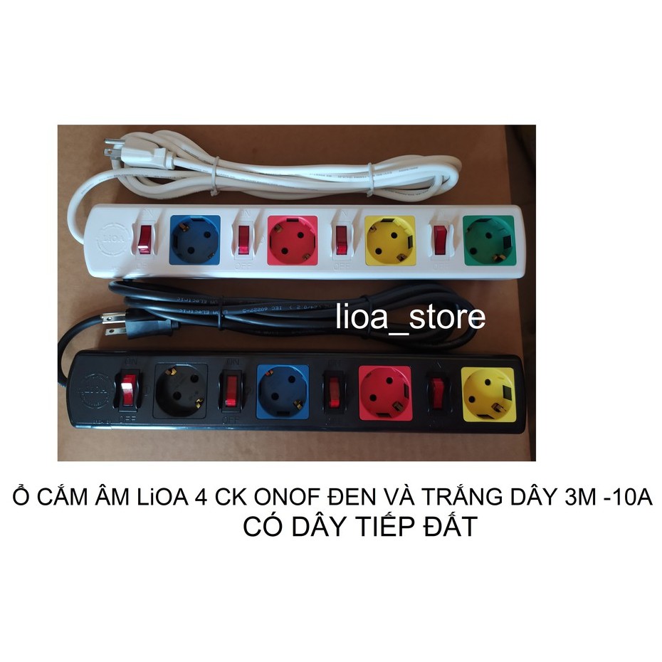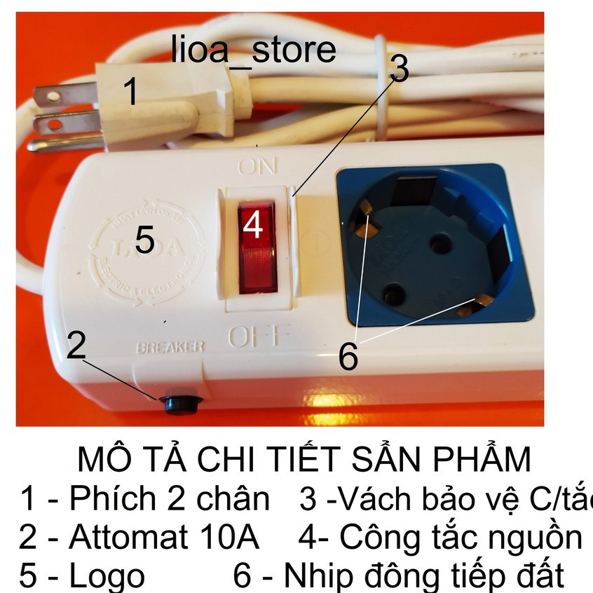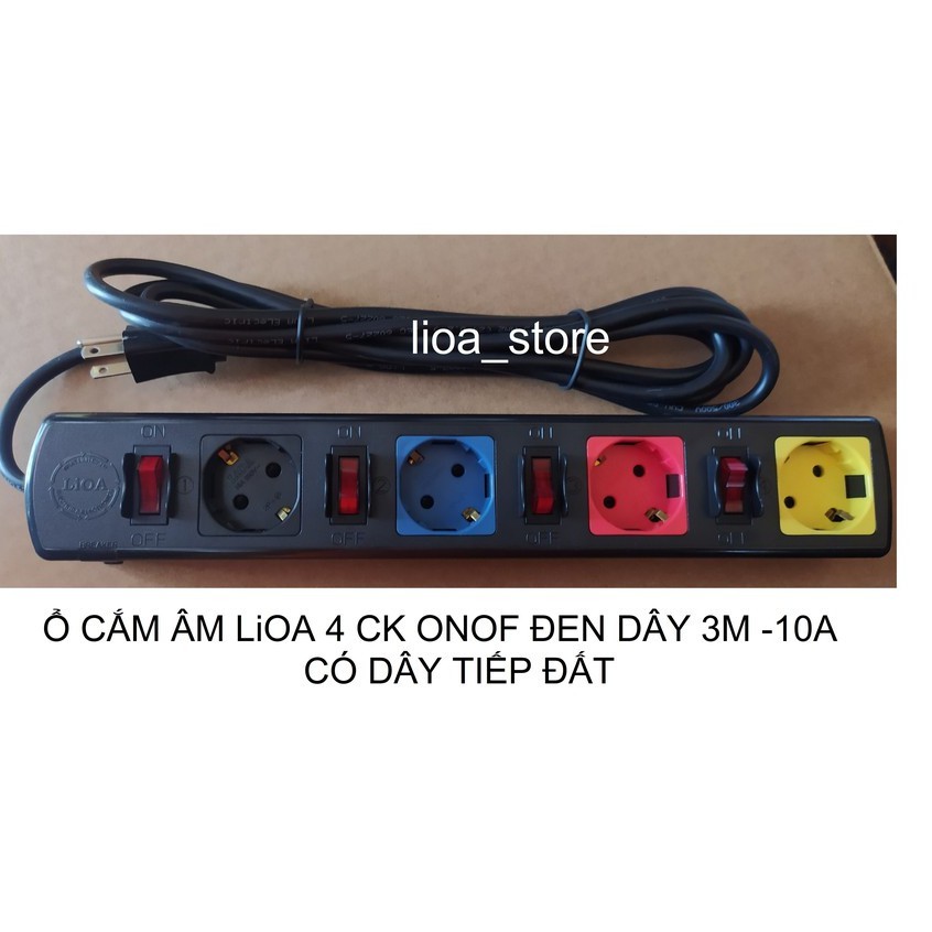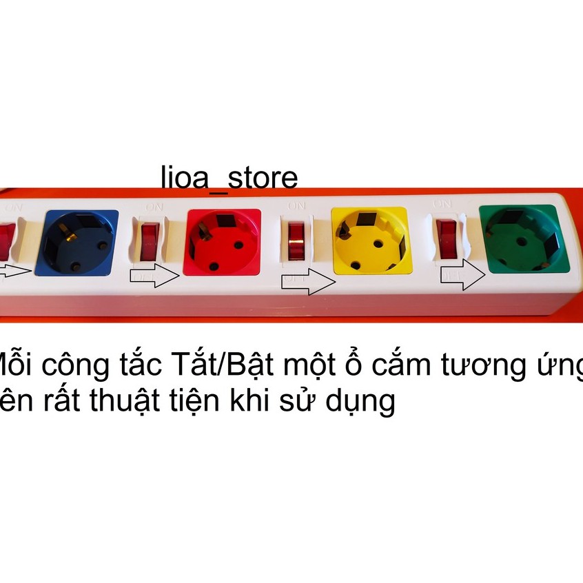 -Thân ổ cắm màu (đen và trắng) có gắn thương hiệu LiOA . Mỗi ổ cắm mang 1 màu sắc khác nhau giúp cho người SD phân biệt được dễ ràng khi dùng nhiều thiết bị cùng 1 lúc. trên mỗi mặt nắp nhựa ổ cắm đều có chữ LiOA. ( để tránh hàng giả hàng nhái).ĐẶC BIỆT là các ổ cắm dều có nắp che AN TOÀN . ( tránh trường hợp nhà có trẻ con vô ý thò tay vào ổ cắm khi đang có điện . khoảng cách giữa các ổ là đảm bảo cắm dc các phích chuẩn ÂU.