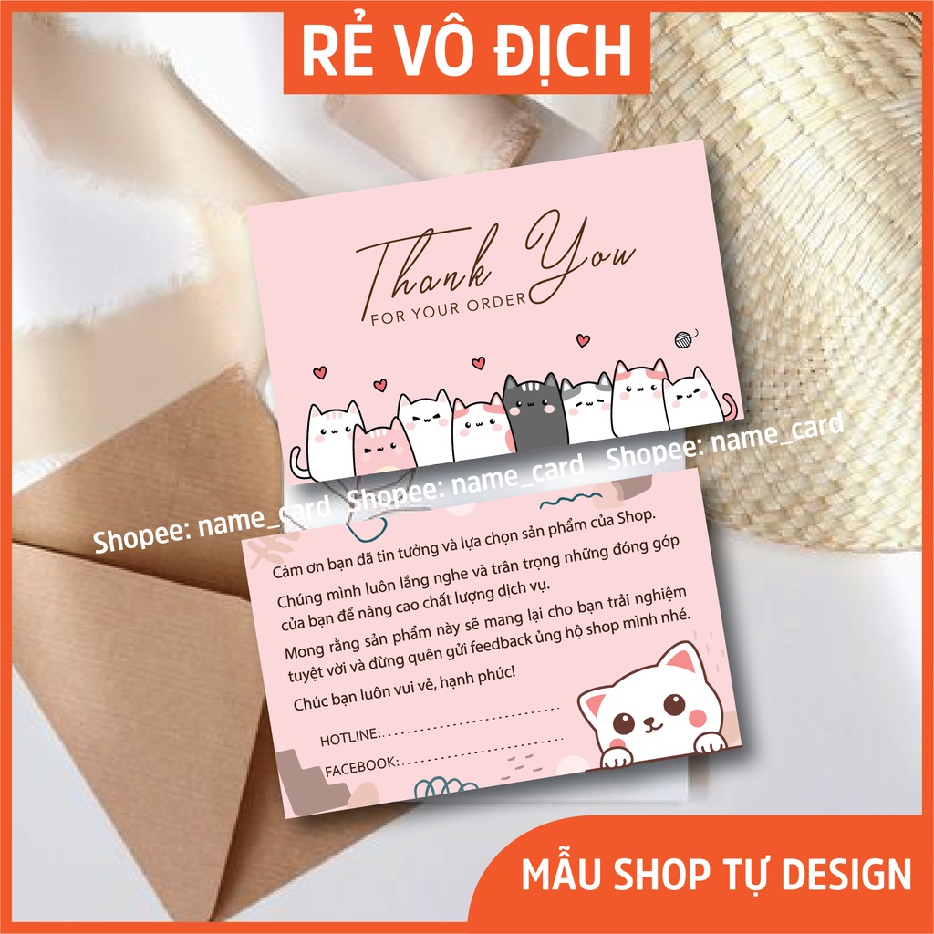 + Trên mỗi thiệp cảm ơn, name card sẽ có thông tin cửa hàng của bạn giúp khách hàng liên hệ với bạn khi sản phẩm lỗi hạn chế tối đa các đánh giá 1 sao