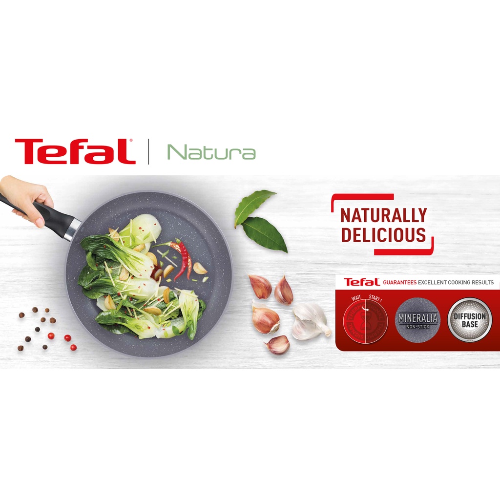 Chảo chống dính vân đá Tefal Natura 20cm có lớp phủ vân đá bên trong và bên ngoài, giúp chống dính, chống trầy tốt hơn và dễ dàng vệ sinh.
