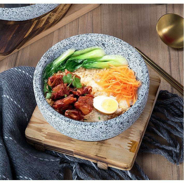 -Thố đá giữ nhiệt Hàn Quốc được sử dụng làm món cơm trộn Hàn Quốc, phở, canh hầm, phở thố đá nóng…