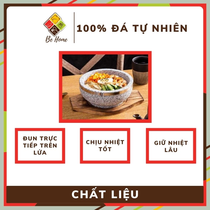 💓BEHOME-MALL💓Thố đá- Tô đá- Bát đá giữ nhiệt Hàn Quốc có viền - Tặng đế gỗ