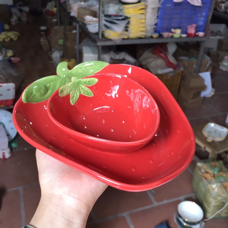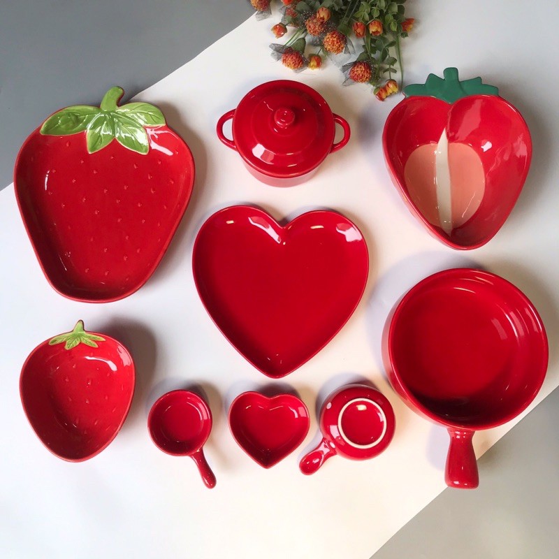 Nhà cửa & Đời sống > Bộ đồ bàn ăn > Dĩa || Bộ bát đĩa dâu tây đỏ cực sang chảnhCòn hàng