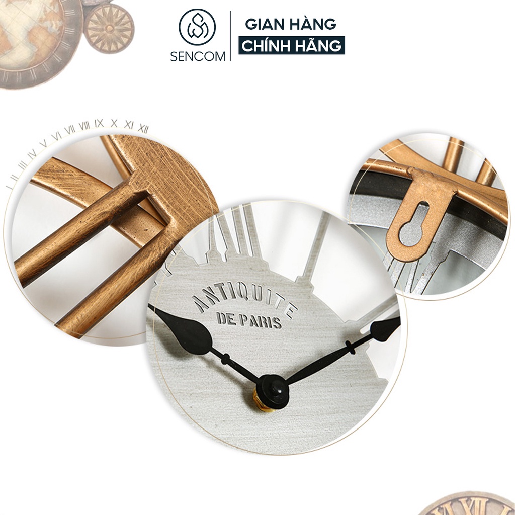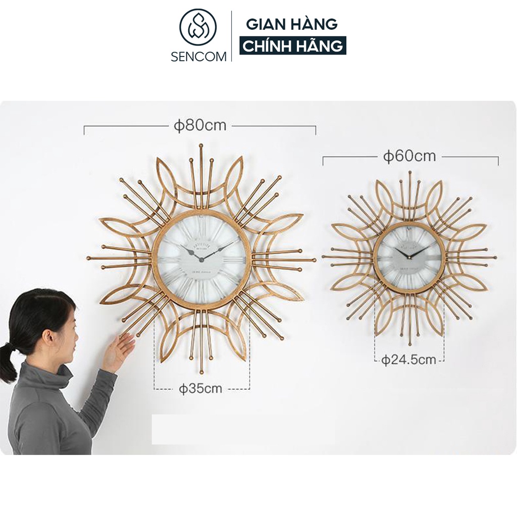 Đồng hồ treo tường nghệ thuật SENCOM kiểu dáng tân cổ decor trang trí nhà cửa mã 2108
