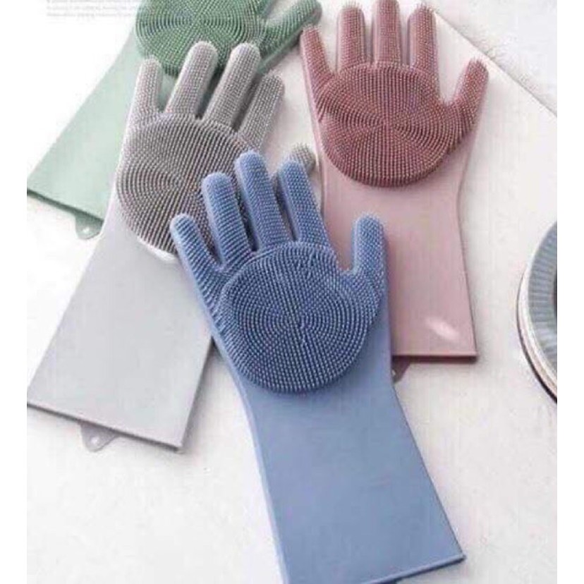** Găng tay tiện dụng có thể sử dụng 2 mặt. 1 mặt với những lớp gai ngay lòng bàn tay giúp chị em dễ dàng cọ rửa sạch trái cây hoa quả, rửa sạch chén dĩa lau chùi nhà cửa , bếp , nhà vệ sinh …. mà ko làm hại da tay. Mặt còn lại có các điểm gờ tạo độ nhám.** Miếng rửa bát, lau chùi thông thường sẽ làm hư da tay bạn mà không cọ sạch được hết mọi ngóc ngách, có bao tay ma thuật thần thánh này các chị em không lo hư tay mà mọi vết bẩn đều được lau chùi sạch.