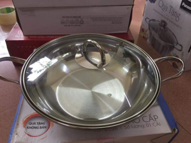 🍱🍱🍱Chảo lẩu Inox 3 đáy (Hàng quà tặng điện máy sharp )🎁🎁🎁🦁🌺🦁đáy nồi thiết kế gồm 2 lớp inox có khả năng thu và giữ nhiệt tốt, 1 lớp nhôm ở giữa giúp nhiệt trải đều khắp nồi, cho thức ăn chín nhanh và đều mà không bị cháy khét.
