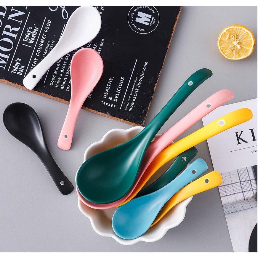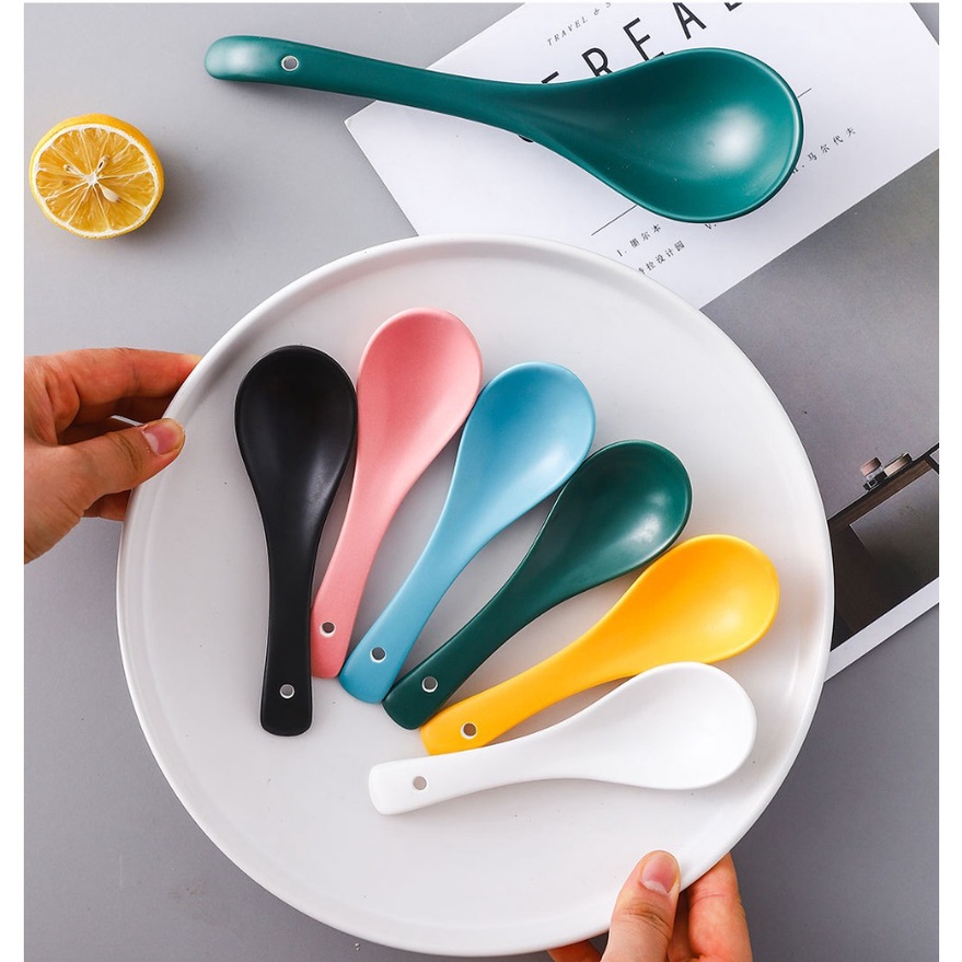Nhà cửa & Đời sống > Bộ đồ bàn ăn > Bộ dao kéo || (HOT) Muôi canh, thìa soup bằng sứ, màu hồng, vàng, xanh rêu cực dẹpCòn hàng