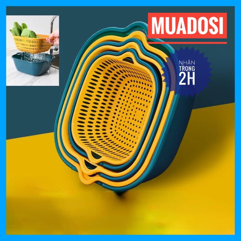 Nhà cửa & Đời sống > Dụng cụ chăm sóc nhà cửa > Chậu, xô & gáo nước || [6 Món] Bộ Rổ Kèm Thau Chậu 6 Món Hình Vuông 3 Kích ThướcCòn hàng