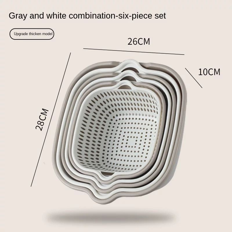 Giới thiệu [6 Món] Bộ Rổ Kèm Thau Chậu 6 Món Hình Vuông 3 Kích Thước