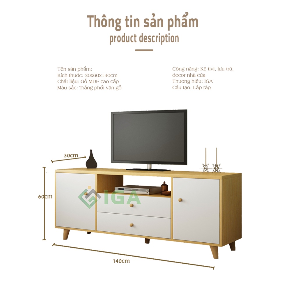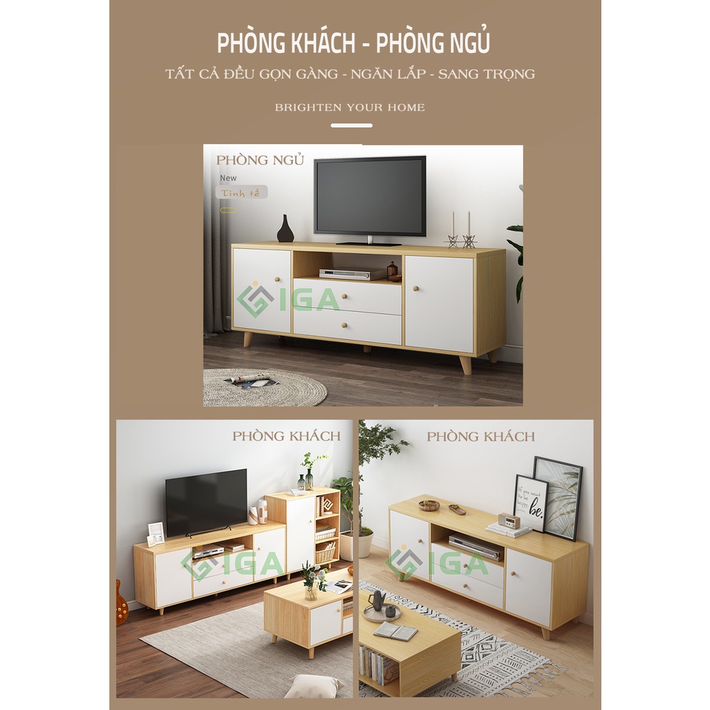 Kệ tủ ti vi để sàn 2 ngăn kéo 2 tủ phong cách bắc âu - gp142---------------