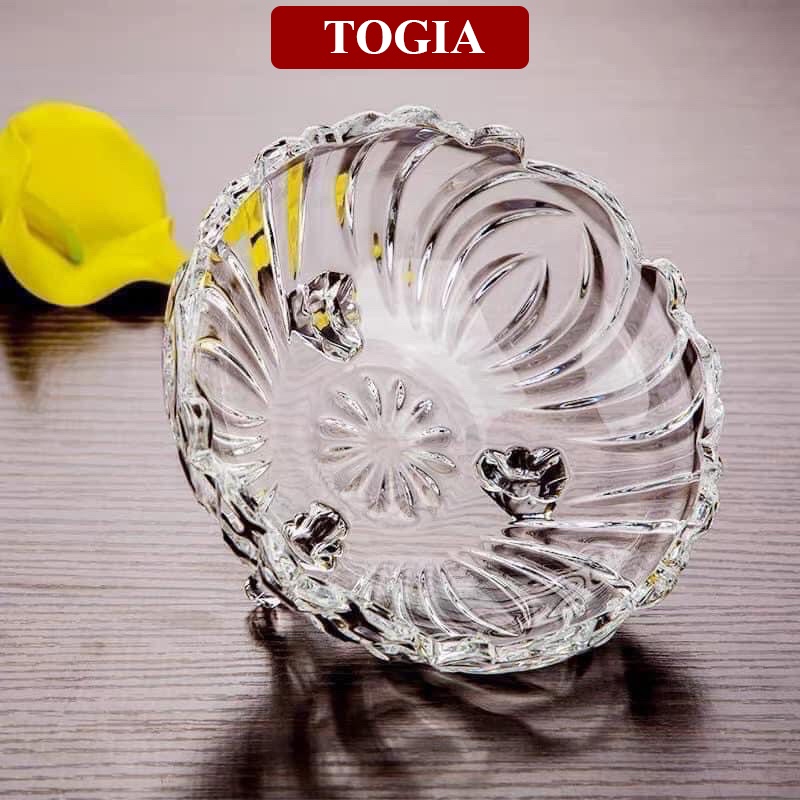 Đĩa Thủy Tinh 3 Chân Đựng Hoa Quả, Thả Hoa Trang Trí Cao Cấp Size 24cm
