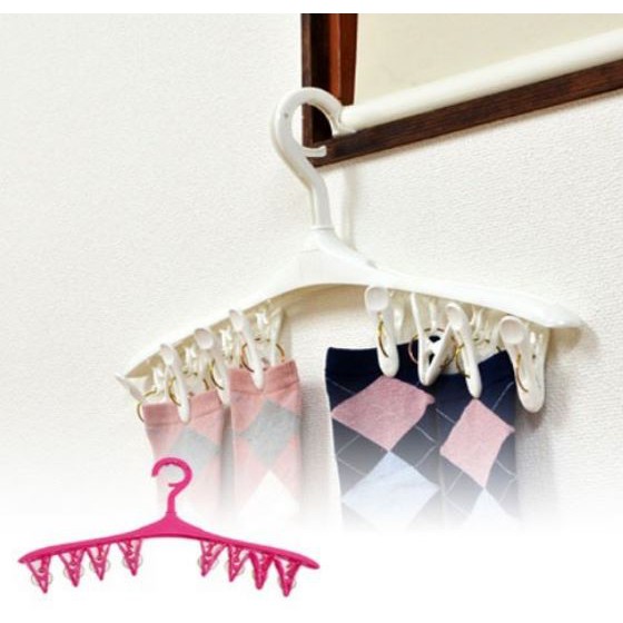 Móc gồm 8 chiếc kẹp nhỏ giúp bạn phơi khăn tay, tất, găng tay, khăn len của bé mà không lo bị rơi giù trời gió to.