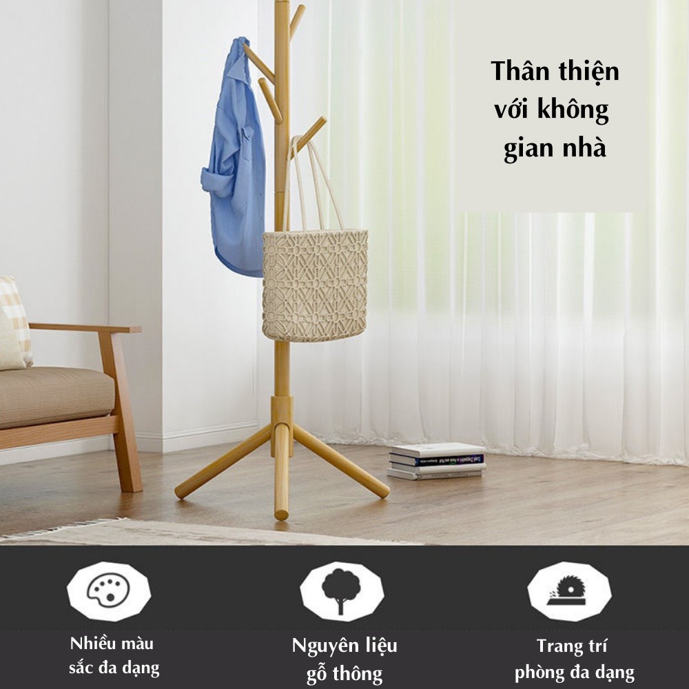 Cây treo quần áo gỗ 3 chân , giá treo nội thất phong cách hiện đại TIME HOME