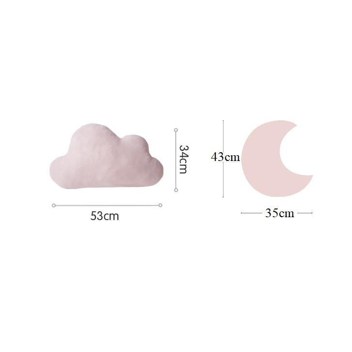 Gối tựa lưng sofa hình trăng và mây độc đáo, gối ôm chất liệu nhung lụaGối tựa lưng nhiều hình dạng phong phú được làm từ chất liệu vải nhung với bề mặt vải mềm, mịn đẹp, bảo đảm an toàn cho trẻ nhỏ. Bên trong thú được nhồi lớp bông gòn nhân tạo có độ phồng và đàn hồi cao, khi ôm tạo cảm giác thoải mái, dễ chịu.