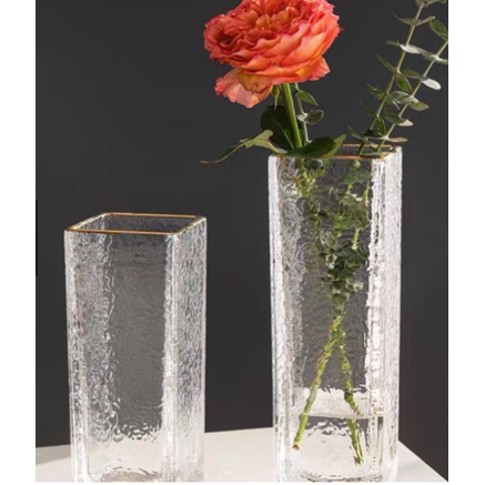 Nhà cửa & Đời sống > Trang trí nhà cửa > Bình trang trí || Lọ hoa bình hoa thủy tinh cao cấp hình trụ dày dặn miệng vàng phong cách sang trọngCòn hàng