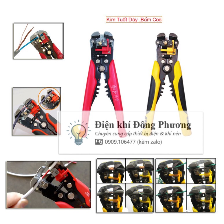 Kìm tuốt dây điện tự động, kềm cắt dây bấm cos đa năng.