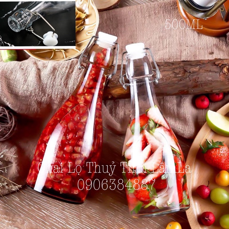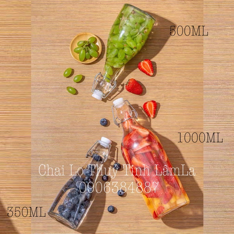 Chai Thuỷ Tinh Béo Gọng Sắt Nắp Cài 500ML 1000ML