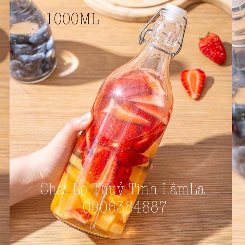 Giới thiệu Chai Thuỷ Tinh Béo Gọng Sắt Nắp Cài 500ML 1000ML