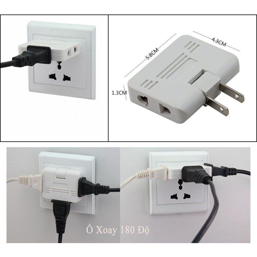 Phích cắm chia 3 ổ Cao cấ Quay gập dễ dàngPhích cắm chia 3 ổ Cao cấ Rất gọn nhẹ